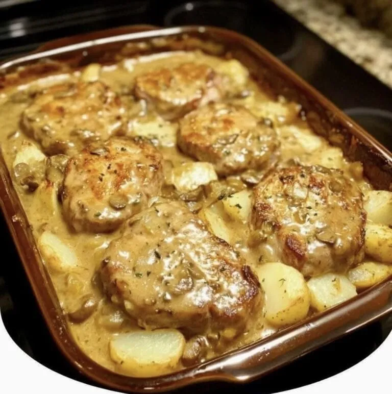 Pork Chop Supreme is an old-school, oven-baked favorite that never goes out of style. Tender pork chops are layered with onions and potatoes, then smothered in a creamy mushroom sauce that bakes into a rich, savory gravy. It’s simple, hearty, and deeply comforting—the kind of meal that brings everyone to the table.